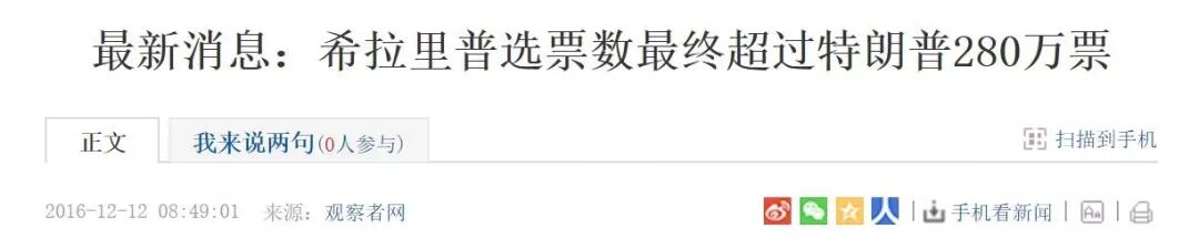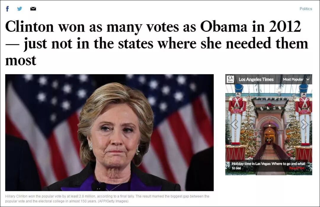 事实上,在2016年的总统大选中,希拉里获得的总票数其实比特朗普要多出280万张。