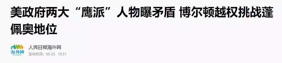 又因为博尔顿经常自作主张,所以特朗普幕僚中的另一位鹰派——美国国务卿蓬佩奥对博尔顿也非常不满,5月份的时候还被CNN专门曝光过两人之间的矛盾。