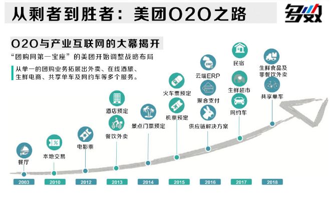 从餐厅、本地交易到电影票、外卖、景点门票、火车票、供应链、生鲜超市、网约车、生鲜食品外卖再到共享单车,都在围绕生活服务这个目标做文章。