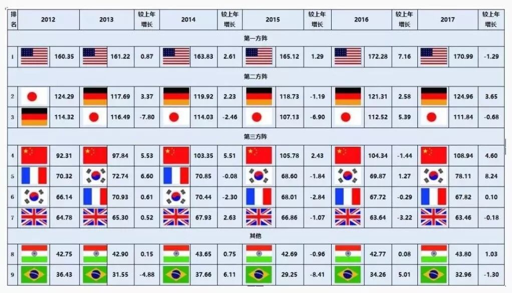 在中国工程院发布的《2018中国制造强国发展指数报告》中,虽然美国连年叫嚷着“制造业衰落”,但综合来看美国制造业实力仍然稳居第一,德国与日本分列二三。我国虽然位列第四,但与美国德国仍有一定距离。