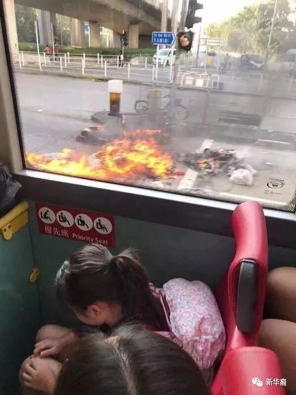与此同时,有暴徒将汽油弹投掷在了一辆学校校车前,熊熊的火苗震撼了整个香港。暴徒还攻击了另一辆幼儿园的校车。一家名为Highgate House School的香港幼儿园当日下午发布声明称,该园一辆车牌号码为“DS6258”的校车早晨在开往学校的路上,在薄扶林路上接近香港大学的区域遇到一个路障,当校车试图绕路前行的时候,一群暴徒涌来并打砸校车左侧的车窗,车窗的玻璃被打破。让人气愤的是,据声明称,暴徒打砸校车时,车上还有一名小朋友,万幸的是小朋友没有受伤。