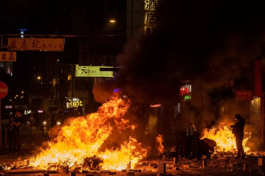 “有人将汽油弹扔到一条通向中国大陆边境的主要铁路线上,在通勤高峰时段造成了延误。大批通勤者沿着铁路行走——这在以效率和秩序而闻名的香港是罕见的一幕。”