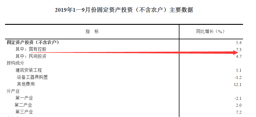 上图是截至今年9月末,投资增长的具体情况。可以看出,民间投资增长只有4.7%,非常乏力。事实上,前三季度北京、上海、深圳的民间投资增速,都维持在2%到3%左右。当前5.4%的投资增速,主要是靠国有控股投资(地方政府+国有企业)来拉动的,国有投资增速是7.3%。未来几个月,“国有控股投资”还必须要发挥“急先锋”的作用。这次下调“大基建”类别的“最低资本金比例”,就是干这个用的。中国经济历来是三驾马车拉动——投资、消费、出口。今年前10个月,出口同比增长2.4%;前9个月投资增长5.4%。至于消费三大件,汽车、手机是下降的,只有楼市有像样的增长——楼市前九个月新房销售额增长7.1%,投资增长10.5%。面对经济下行,国家已经在刺激汽车消费,深圳、广州等多个城市放松了限购;至于手机,则通过5G推动换机消费。进出口在贸易摩擦背景下,仍然有不确定性。所以,在这样的时候“大基建”必须顶上去。值得关注的是,2015年那次下调“最低资本金比例”有房地产的“份儿”,至少降低了商业地产的比例,等于给楼市加了一些杠杆。但这次,完全没有提及楼市。是不是楼市被放弃了呢?其实不然,楼市仍然非常重要,因为规模太大。今年前9个月,房地产行业投资是9.8万亿,新房销售额超过11万亿。这样一个庞大的产业,不可能让它冷。最近上海、深圳等城市的“楼市新政”,就传递了“楼市不能冷”这样的政策信号。