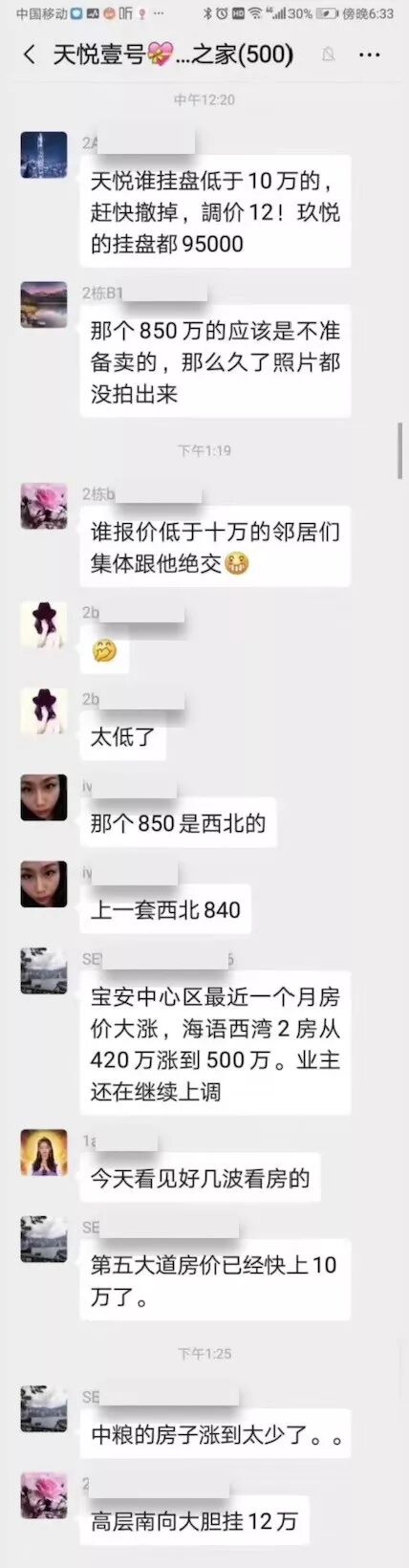 中粮天悦壹号某业主群,有业主表示:谁报价低于10万就和谁绝交