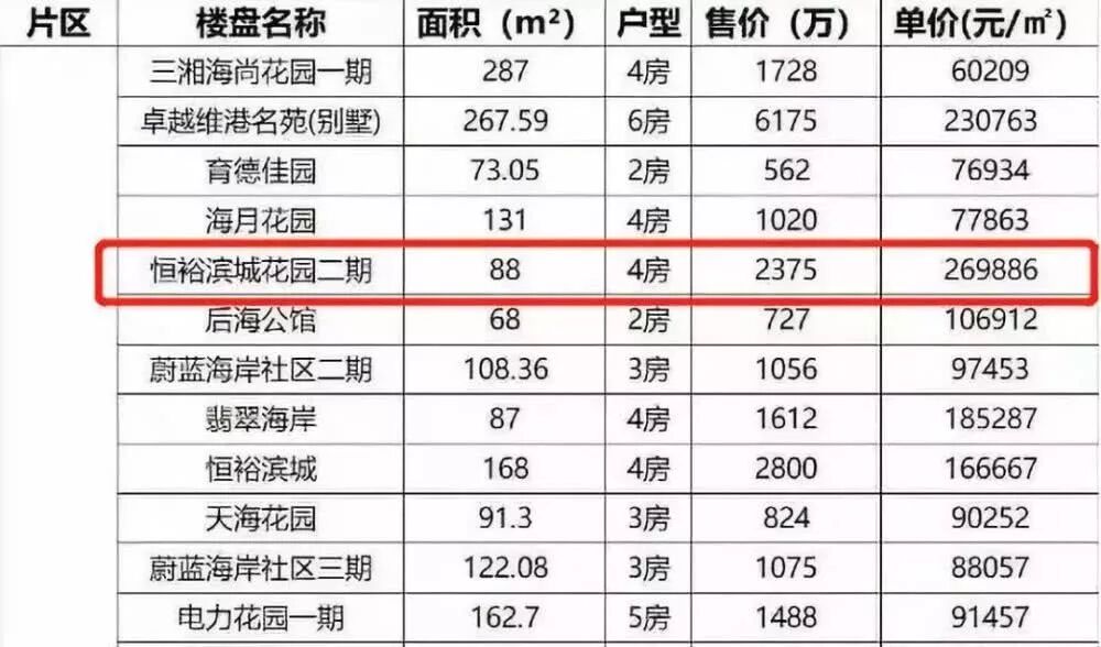 2019年10月,深圳后海片区部分成交二手房