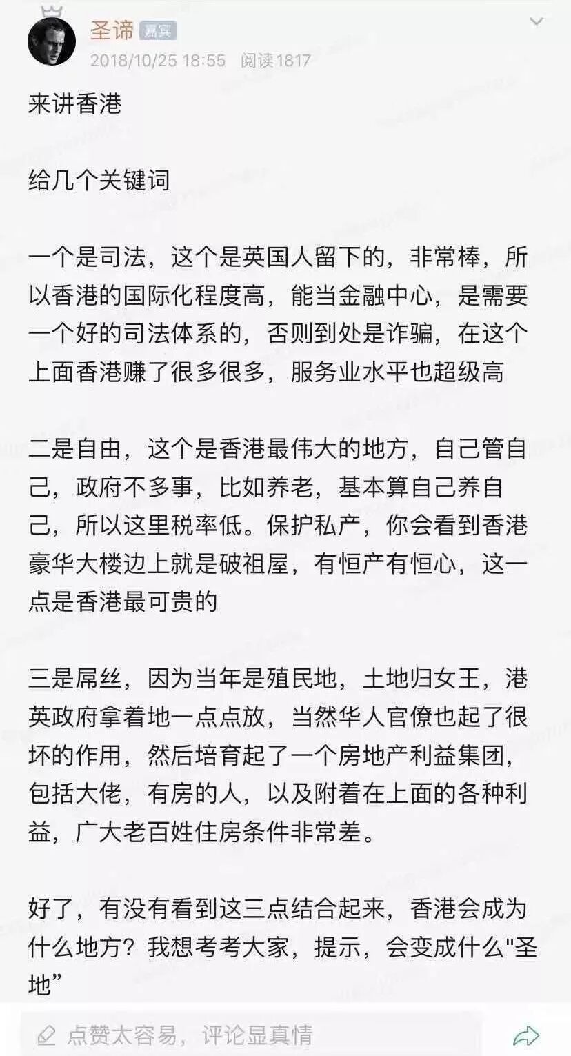 其实对香港的今天,我早有预料,去年去香港游玩办事,我已经闻到了不详的味道,只是没想到这么快!这是去年10月份写的,我不想假装先知冒充神棍,只是对这里有极其深入的认知罢了。