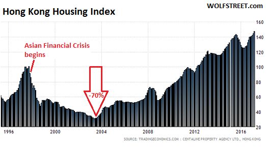 香港房价从1996至1997年短期翻倍,随后1997至1998腰斩