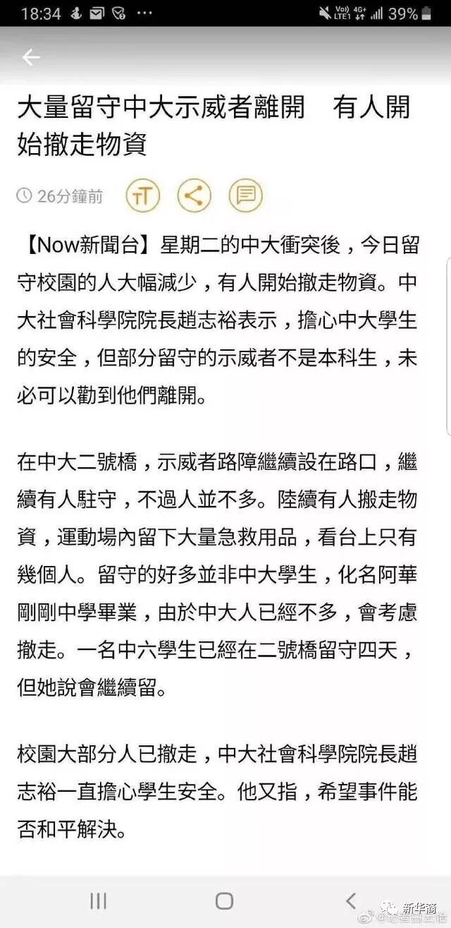 除了一些极端暴力分子仍然在进行暴力活动,几所高校的黑衣示威者都在陆续撤退: