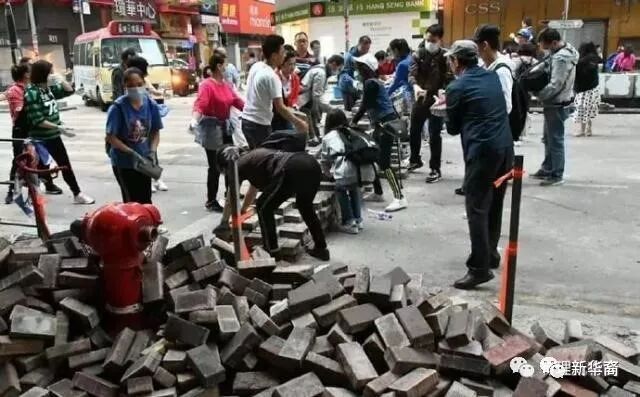 据香港文汇网报道,在元朗,黑衣人公然破坏轻铁站,引起广大街坊不满,纷纷指责并驱赶暴徒,期间有市民捡起地上的砖块扔向黑衣人,亦有巿民自发清理道路。现场视频显示,在元朗大马路近轻铁站位置,街道上满是暴徒扔下的砖头,一名居民拿起一块砖头,向黑衣人投出,但并未投中。视频中不断有居民大喊,“走啊,走!”“这里不欢迎你们!”在元朗街坊的合力驱赶下,黑衣人朝另一边逃去。视频最后显示,街坊不论男女老幼,一同动手清理满是杂物的街道。