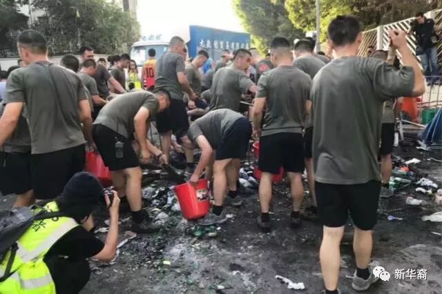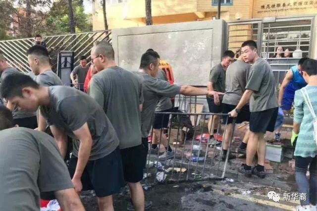 第一件事情,驻港部队官兵上街和市民一起清理路障。