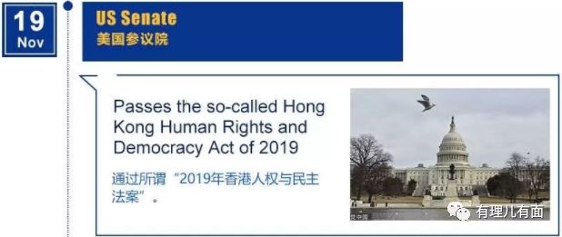 当地时间11月19日,美国参议院通过《香港人权与民主法案》。这个法案于今年6月由参、众两院推出,上个月,众议院的版本已通过,而参议院的版本通过后,按照美国的立法程序,将由两院协商完成统一版本后,提交总统特朗普签署。该法案在2014年由时任美国国会及行政当局中国委员会(CECC)共同主席的史密斯众议员等人第一次提出,之后又被数次提出,今年的法案已经是第四个版本。自今年6月13日美国国会议员卢比奥、麦戈文重提所谓《香港人权与民主法案》,到10月15日美国众议院通过,再到11月19日参议院通过,已历经5个月零6天,真是蓄谋已久,为乱中乱港可谓“用心良苦”。