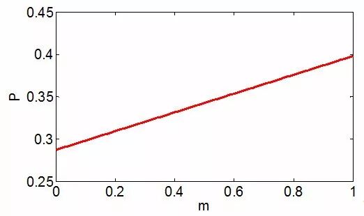 因为叫牌欲望因子因人而异,当叫牌欲望因子在[0 1]之间变化时,王炸出现概率P的变化规律如下图所示。