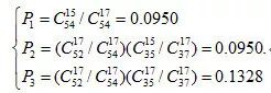 在这里,我们可以将王炸出现的概率分成两个阶段来进行计算,第一阶段是三个玩家的摸牌阶段,王炸出现的概率可表示为: