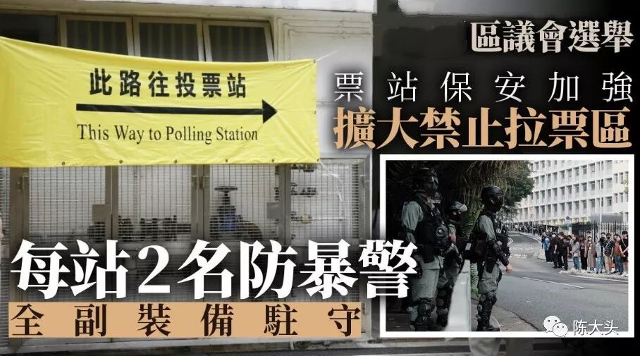 主要是针对建制派的候选人及选民。纵暴政客及黑色文痞曾公开献计,在投票日,偷走建制派支持者的身份证,剪烂投票通知书,或者由投票站的“黄丝”破坏选民的选票,导致选票作废。还有由立场泛黄的年轻人以“邀请”长辈喝茶为名,行变相禁锢之实,让他们投不了票,以此扭曲选举结果。这些消息真假难辨,但有一点可以肯定,今次区议会选举难以风平浪静,不同程度的暴力可能发生。针对暴力可能发生的事件,政府及警队高度戒备,以三层保安部署应对区选风险。首先在最核心范围,每一个票站由两名穿上防暴衣的防暴警察,以及民安队员和消防员同时驻守票站;第二层,包括军装、便衣人员人员,将会在各票站附近高姿态巡逻;