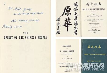 (图为辜鸿铭在1920年签赠尼尔·格雷的《中国人的精神》初版)