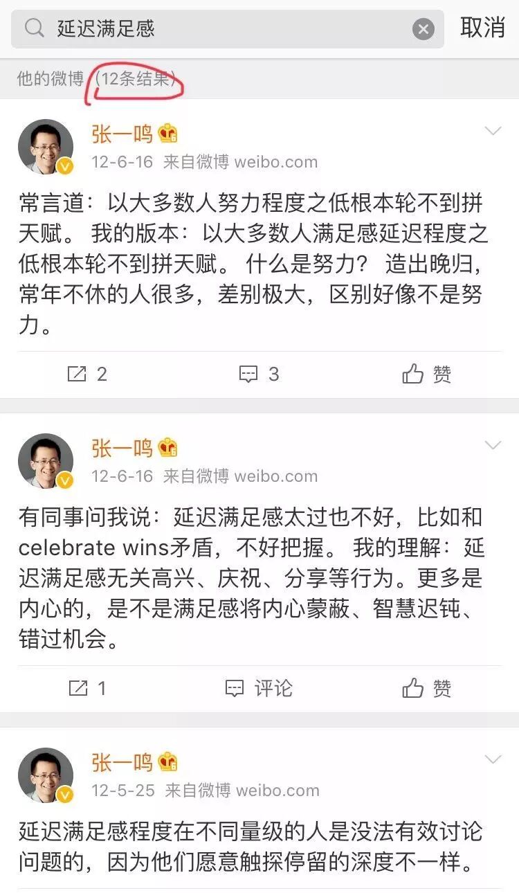 张一鸣是有着很强自制力的人,时时刻刻记得延迟满足感的重要性。
