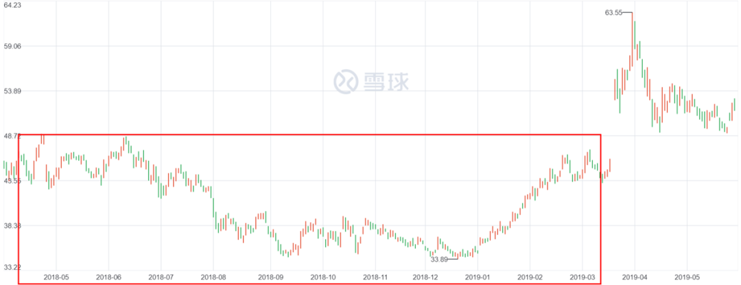 (红框为持有1年的股价波动区间,数据来源:雪球)