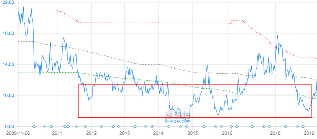 首先,这只股票的估值长期处于低估区间,符合便宜的标准: