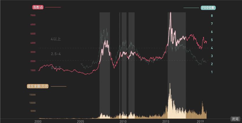 下面这张图,统计了2005-2019年中国股市的整体情况。