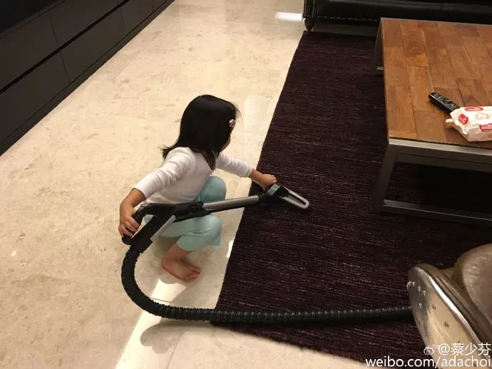 在演员蔡少芬的微博中,经常看到家中两个可爱的女儿会帮忙做家务。