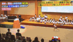 10段跳箱垒起来比他还高半个身子,小小的他失败了。