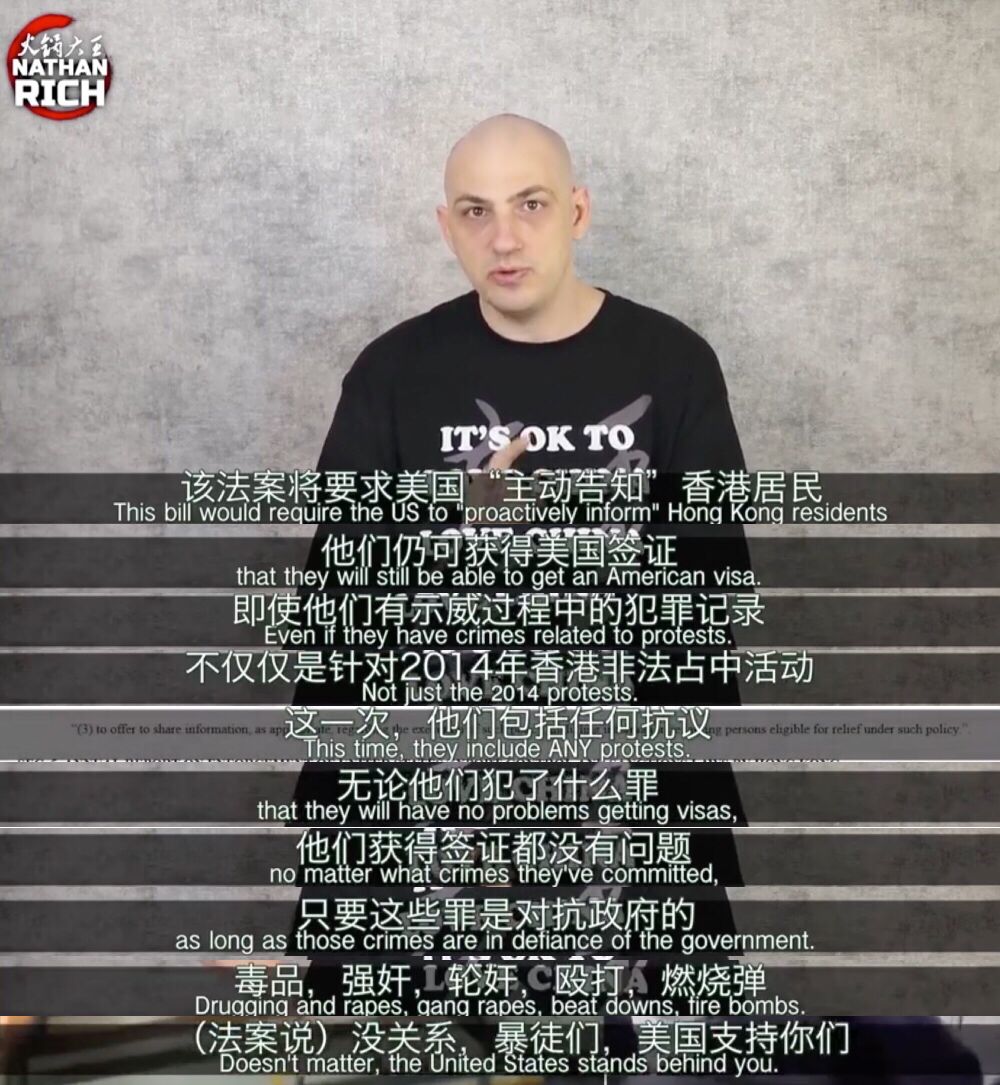 这是《香港人权与民主法案》获得参议院通过后,美国人@NathanRich火锅大王 表达的无奈。