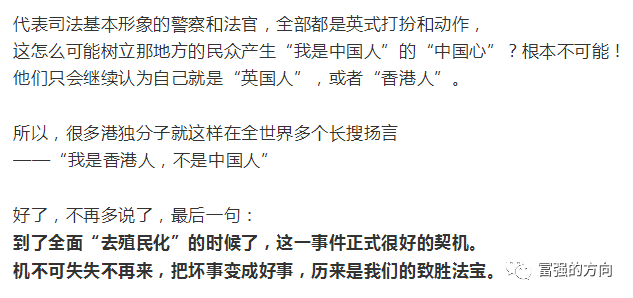 在这一次香港暴乱开始后,作者先后写过二十余篇文章,一半都谈到港乱的重大根源是因为我们一直没有启动“去殖民化”进程。