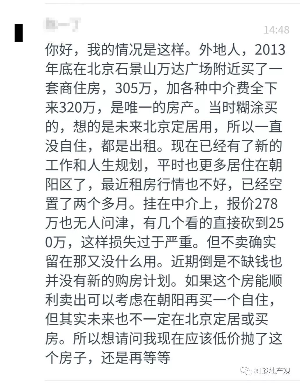 以上这位朋友,我表示深深的同情,2013年买的北京商住公寓,现在成了烫手山芋。如果当时买住宅,现在应该涨了2倍,而他的商住却赔了70万而且还卖不掉。