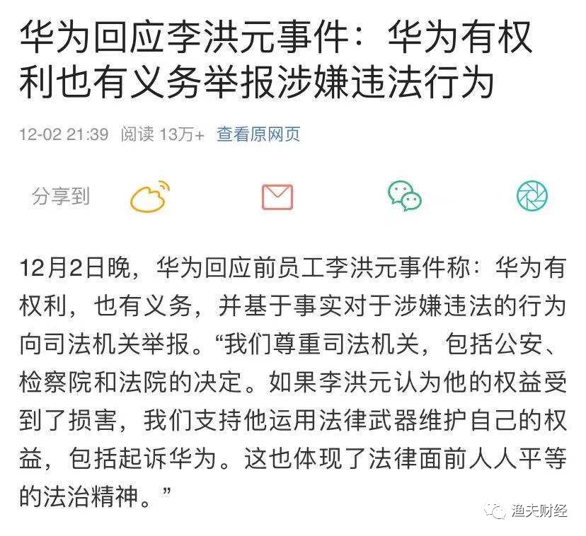 这同样,也华为的困境啊,现在李手握有利证据,有一说一,法不容逻辑,而看证据。华为不能说理,不能道歉,一定是尊重司法,这种表态错了吗?没有错,但被同情弱势的文化所抵触,形成了几乎一面倒的声音。
