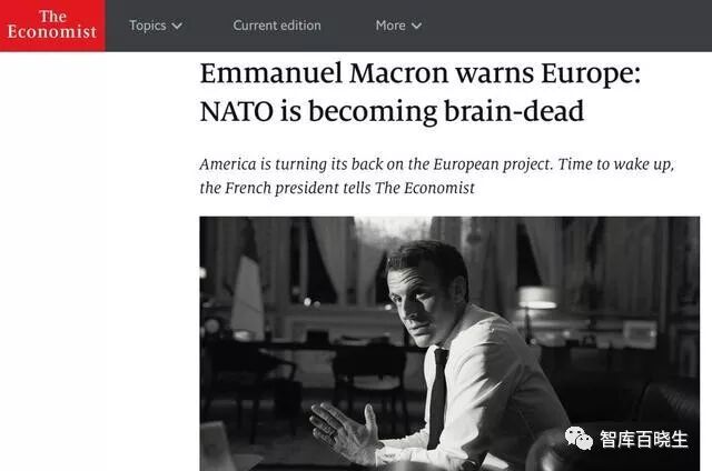 马克龙在接受《经济学人》杂志采访时称,“我们面临的是,北约正在经历脑死亡”。他警告称,欧洲再也不能依靠美国来保护北约盟国,需要重新思考自己作为地缘政治力量的战略定位,否则欧洲将“失去对命运的掌控权”。马克龙还表示,美国和北约盟友之间缺乏战略决策上的协调,“只有在最后担保人正常运作时北约才能发挥作用”,但面对现在的美国,“我们需要重新审视北约到底是什么”。