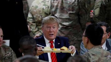 而此时,让他言辞激烈的核心当事人美国总统特朗普,正在飞往阿富汗的旅途上。11月28日感恩节当天,特朗普现身阿富汗,为驻阿富汗美军带来节日惊喜和慰问。