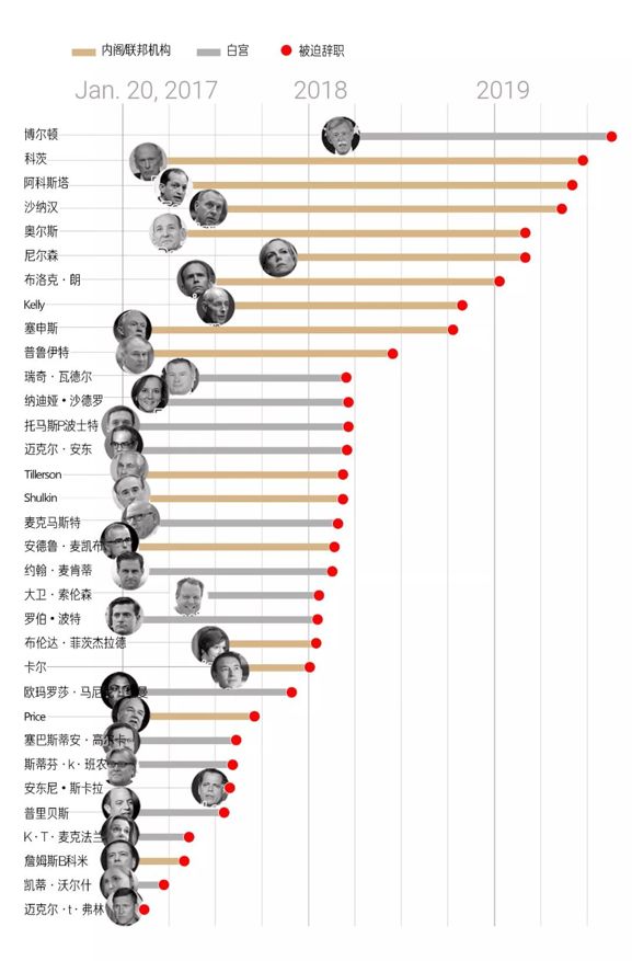 据统计,特朗普政府在执政的头18个月里流失了近1200名高级职业公务员——比奥巴马执政的头18个月多出40%左右。其中不乏迈克尔·弗林、纳迪娅·沙德罗这样特朗普身边的高级官员。