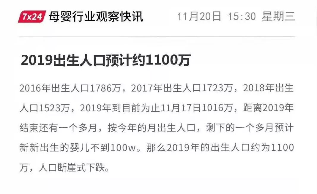前段时间有一则新闻“2019年出生人口预计约1100万,人口断崖式下跌” 引起热议。数据肯定不那么准确,但问题是真的。在中国出生人口减少的当下,母婴行业面临蛋糕越来越小、竞争越来越激烈的现状。如果他的小工厂不能稳住原有的市场份额,未来盈利面会恶化。