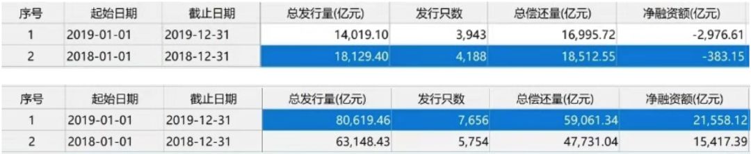 数据显示,民企2018年的净融资额为-383.15亿元,2019年为-2976.61亿元,两年从债券市场得到的融资是负数,-3360亿;国企2018年的净融资额为15417.39亿元,2019年为21558.12亿元,两年加总接近3.7万亿。也就是说,债券市场对民企充满了不信任,民企几乎丧失债券融资能力。