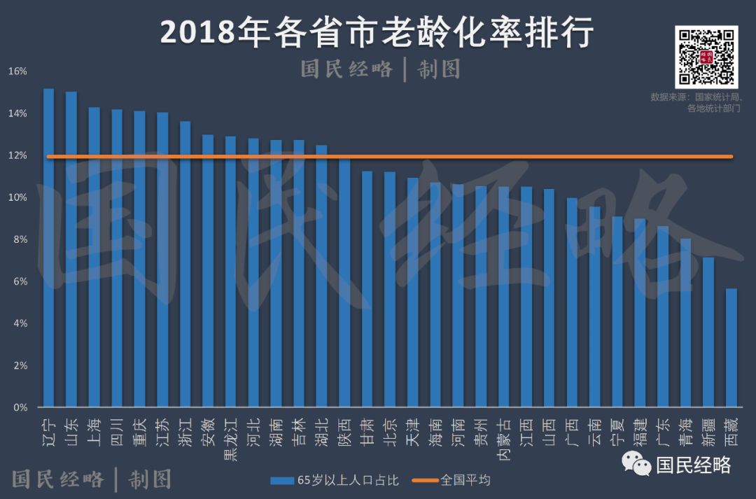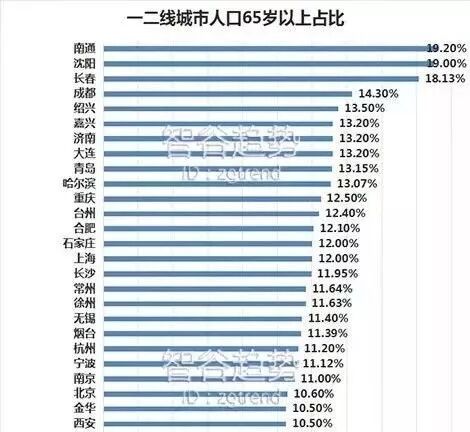 在城市群规模和万亿GDP城市数量上,长三角还要更胜一筹。然而,出人意料的是,势头如此强劲的长三角,却是全国老龄化程度最高的区域之一。长三角的老龄化,仅次于东北,超过京津冀,更远超珠三角。目前,我国65岁以上人口占比高达11.9%,老龄化日趋严重。而长三角三省一市的老龄化率全部高过平均水平,广东则远远低于平均水平。可以看到,在内地31个省市中,上海、江苏、浙江、安徽的老龄化率全部跻身前十,而广东则与青海、新疆、西藏等同处垫底位置。一般而言,65岁及以上人口比例在7%以上为老龄化社会,14%以上为深度老龄化,20%以上为超级老龄化社会。以此标准来看,在长三角三省一市中,上海和江苏均已进入深度老龄化社会,浙江、安徽离深度老龄化只有一步之遥。与之相比,广东则刚进入老龄化社会不久,老龄化率在全国基本垫底,至于珠三角九市,人口结构只会更加年轻。令人诧异的是,全国老龄化第一城,不在东北,而在长三角的江苏南通,这个城市接近1/3的人口超过60岁,而0-18岁的儿童仅占12%。同样,不难发现,在主要一二线城市老龄化排行中,长三角与东北城市可谓并驾齐驱,成为老龄化最严重的区域。一个直观但并非决定性的原因是,长三角经济发达,财富充盈,加之江南烟雨浩渺,气候宜人,人均预期寿命远远高过中西部地区。人均预期寿命高,老年人口就越多,老龄化率越严重,这十分正常。然而,问题是,同为发达地区,广东的人均预期寿命也不低,但老龄化率却在全国垫底,这显然不是预期寿命所能解释。长三角出生率过低, 不仅低于全国平均水平,更远远低于广东。在之前文中整理的数据显示,在长三角三省一市中,仅安徽人口出生率高过全国,浙江基本持平,江苏、上海均远远低于全国平均水平。人口出生率过低,背后主要是经济发达、城镇化率高的因素,这是国际惯例。