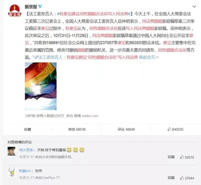 近日,有消息传闻立法机构正在探讨同性恋婚姻合法化事宜,尽管只是探讨阶段,距离进入法典还有相当漫长的距离,但有必要对此抱以足够的警惕。