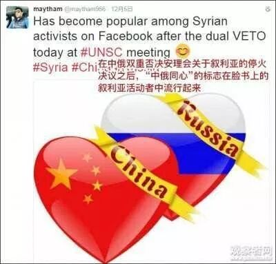 从2012年以来,中国和俄罗斯在叙利亚相关决议上行使了多次否决权,这个姿态得到了叙利亚人民的高度认可。