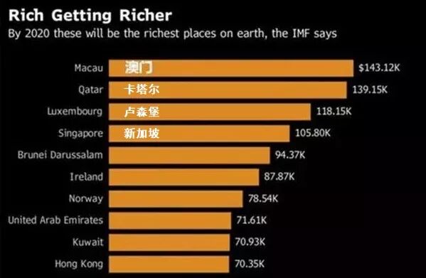 IMF(国际货币基金组织)还有一项预测,说在2020年,澳门人均GDP会成为全球第一。