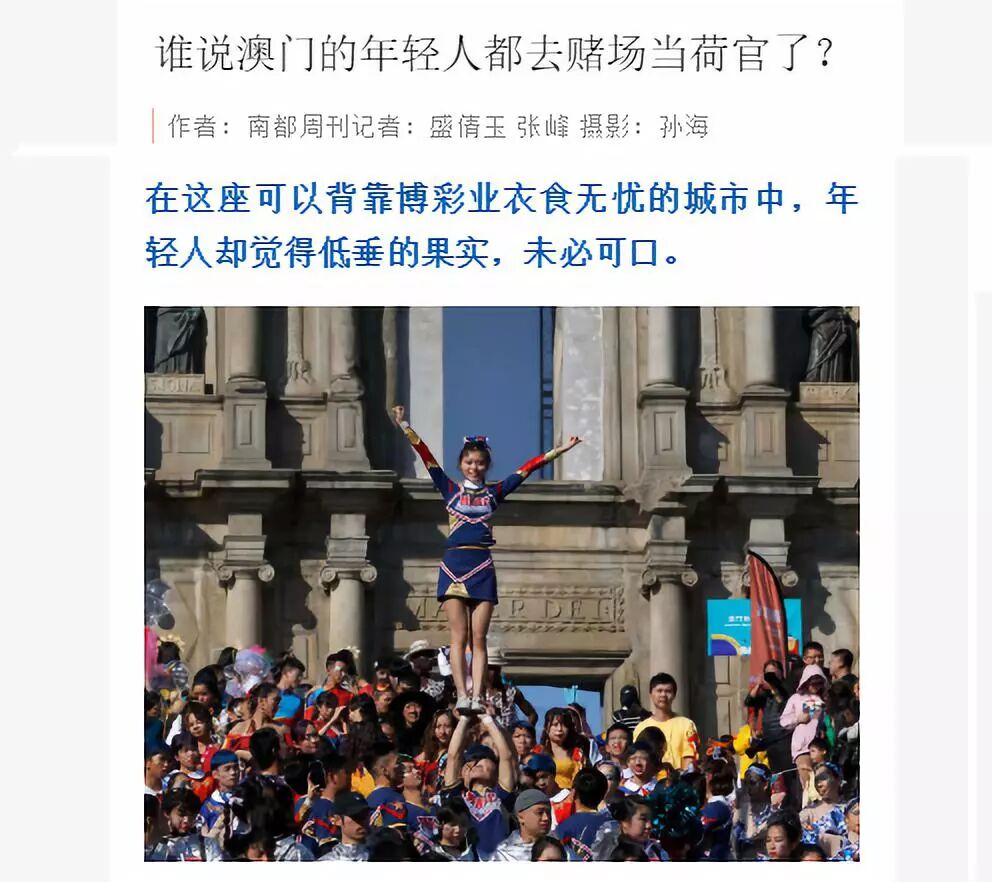 南都周刊报道,“在这座可以背靠博彩业衣食无忧的城市中,年轻人却觉得低垂的果实,未必可口。”