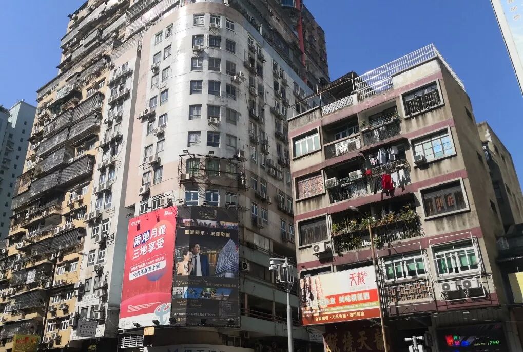 (澳门街头随处可见的房屋,老化比较严重)