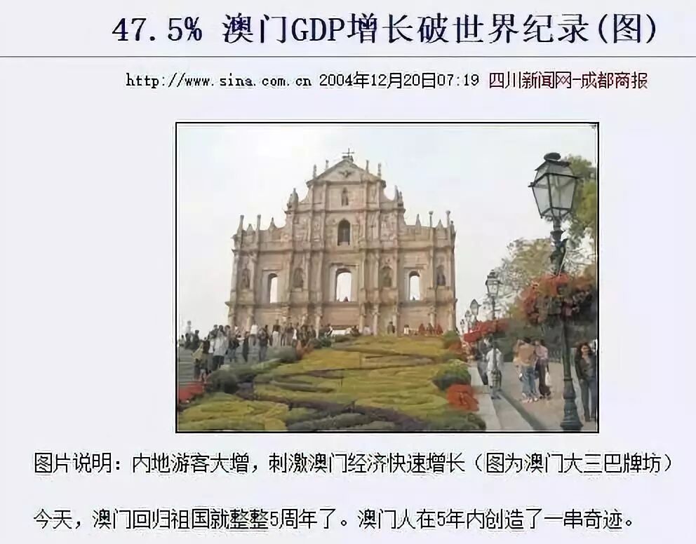 2004年一季度,澳门的GDP增长率高达恐怖的36%,二季度GDP增长率则达到了47.5%,创下世界纪录。
