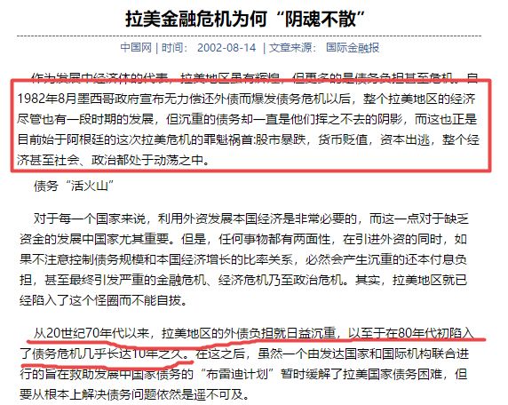 这10年大量美元资本从美国流出,通过世界银行和IMF的管道流向了拉美。拉美的黄金岁月就是在这个背景下产生的。1979年开始,收网拉美的时间到了。从这一年开始,美国为遏制石油危机带来的通胀,收紧了宽松的货币政策,逐步把联邦利率提升至1982年20%的历史最高点。加息以后的高利率吸引大量资本回流美国,拉美国家也跟着倒了霉,1982年开始全部陷入经济危机。以前不是总有各种报道分析拉美危机总是阴魂不散嘛,其实就是因为在美元周期被割了韭菜。