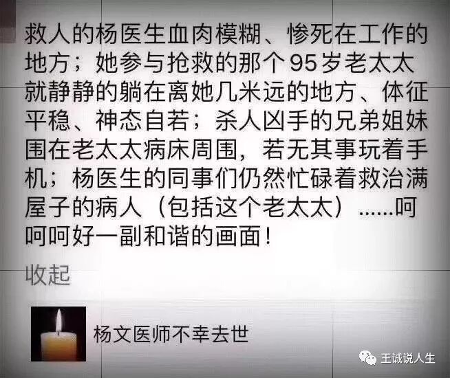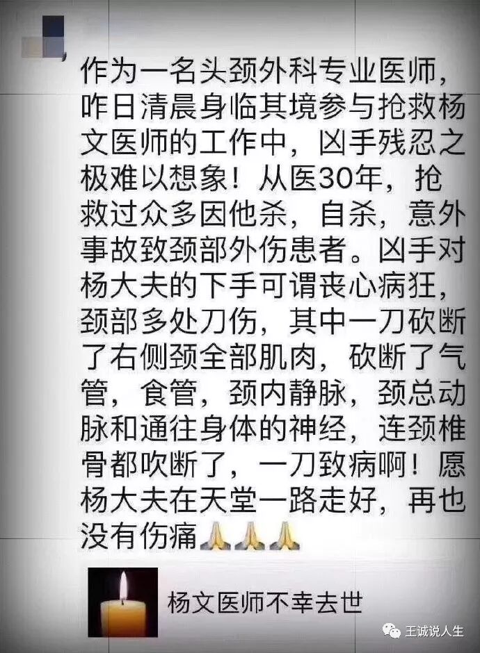 愿杨文医生的在天之灵安息,一路走好,愿意杨文医生的悲剧,能唤醒我们的社会,对医生有更多的包容与理解!愿悲剧不再重演!