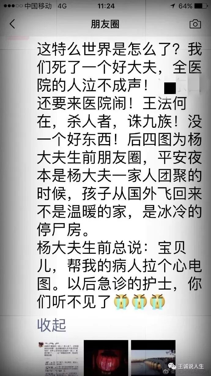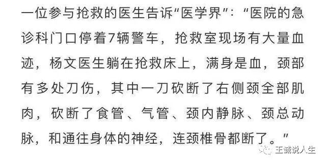 上面几张都是医生和社会人士发的微信朋友圈截图,恐慌情绪如野草般疯长。本来高速发展的中国社会,就充满了各种不确定性,大家都挺缺乏安全感的。现在可好,杨文医生的悲剧一出来,更是搞得人人自危,凌晨五点啊,在自己的工作台上啊,就那么突然地被残忍杀害了!