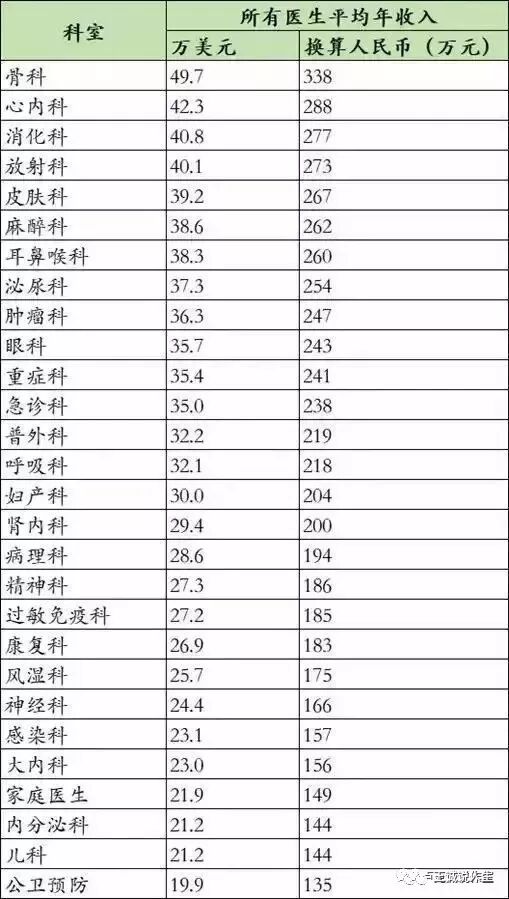 美国医生的平均收入