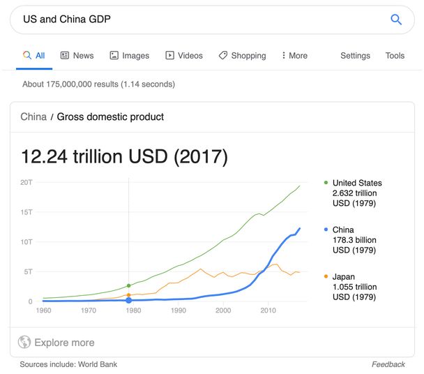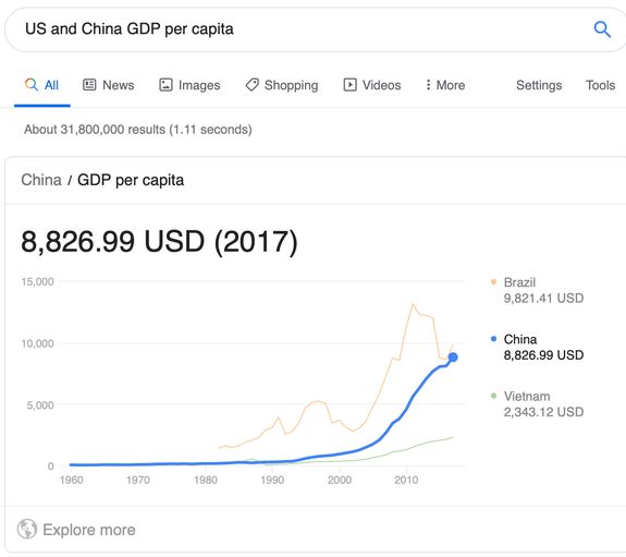 ▲ 谷歌甚至拒绝比较美国和中国之间的人均GDP。