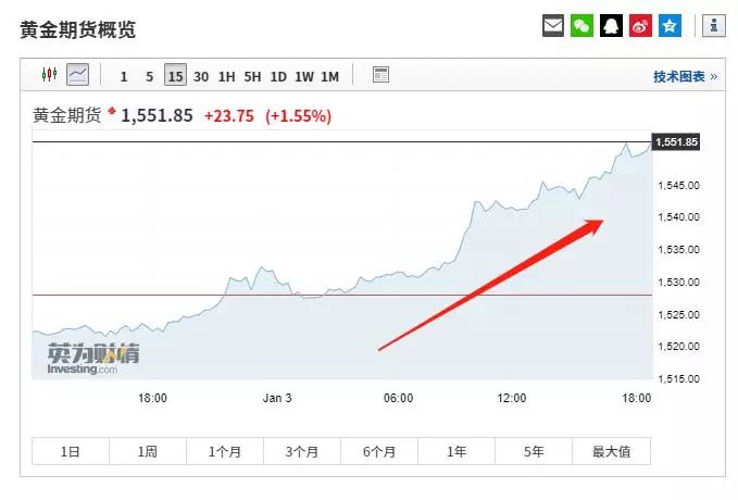 战争一触即发的担忧,引爆了市场中的避险情绪,黄金价格时隔4个月重新向上突破1550美元关口。