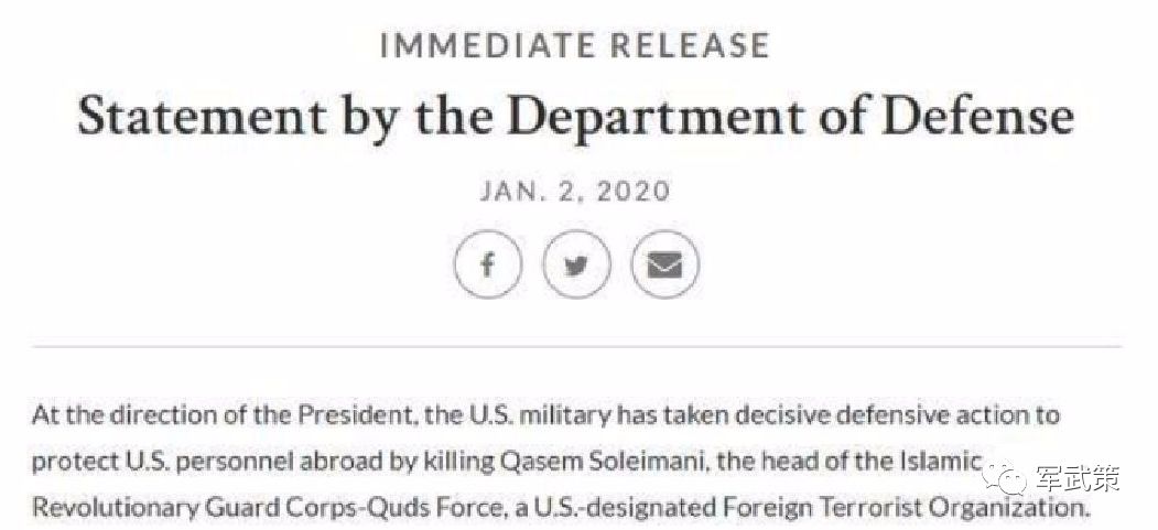 随后,在美国国防部发布声明中证实,是美国总统特朗普下令对苏莱曼尼空袭发动“斩首”行动。五角大楼在声明中说:“在特朗普指示下,我军采取了果断的防御行动,除掉苏莱曼尼以保护美国在海外的人员。”