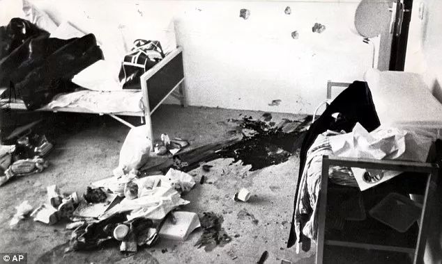 1972年慕尼黑奥运会上,11名以色列运动员、教练及裁判遭恐怖分子袭击并被杀害。图为满是血迹和弹孔的运动员房间。