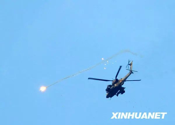 图为2009年的“铸铅”行动中,一架以军武装直升机向在加沙地带北部地区发射火箭弹。图源:新华社|殷博古